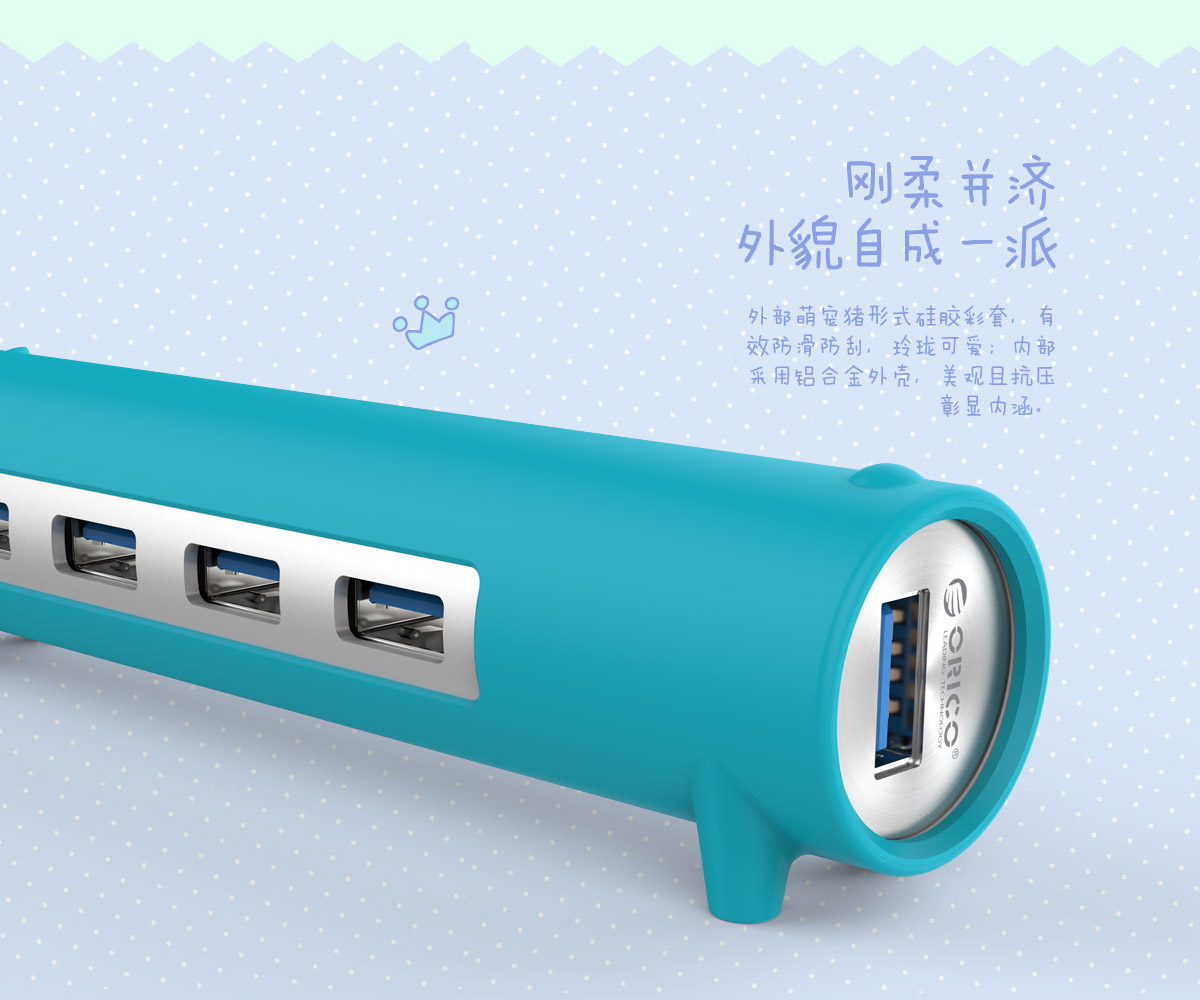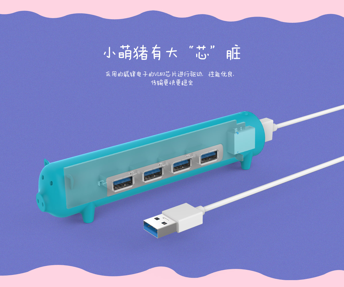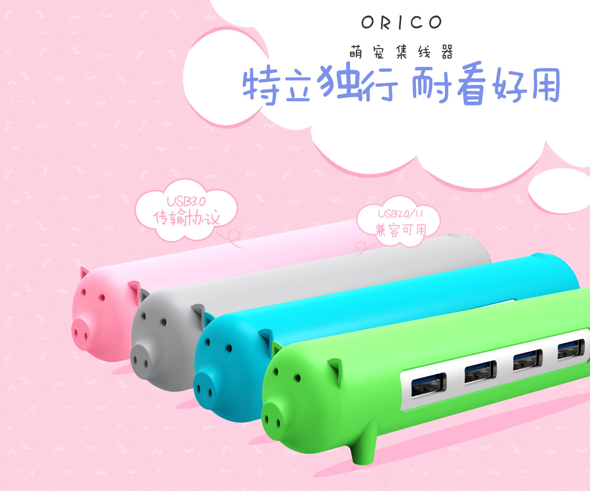 鋁合金打造 防滑硅膠外殼 多色可選 小豬萌寵造型 4口USB集線器