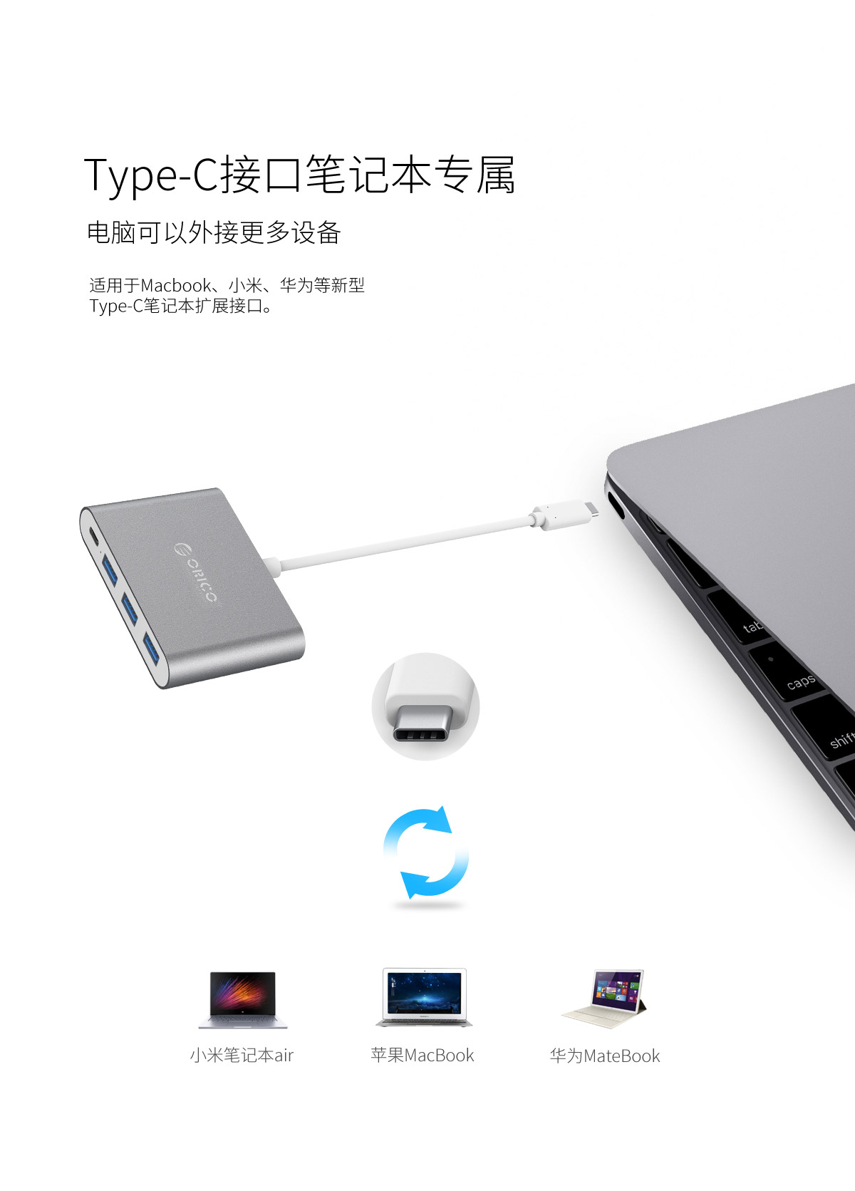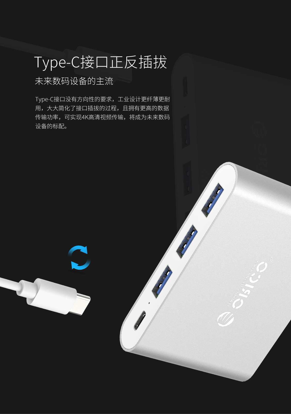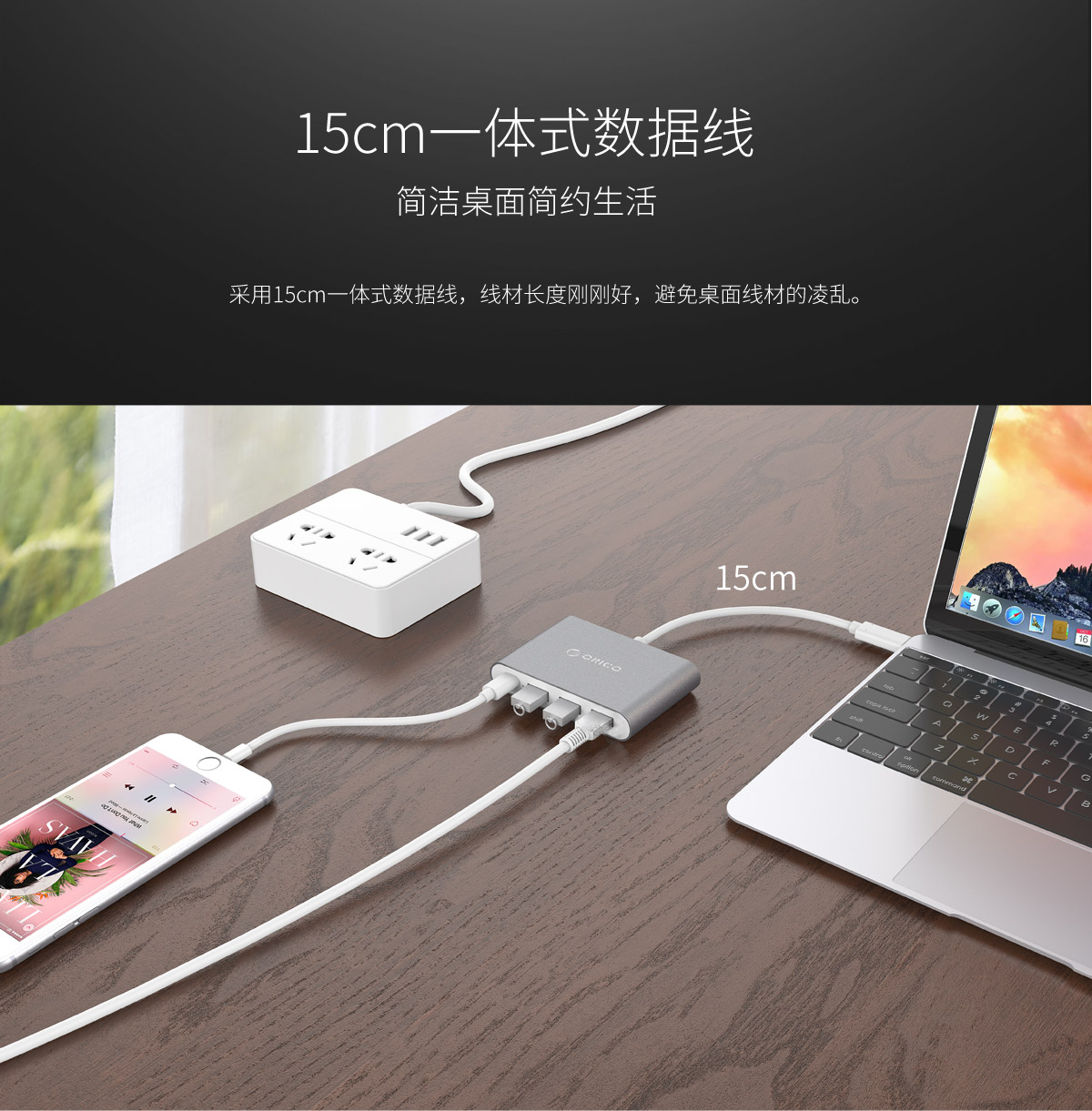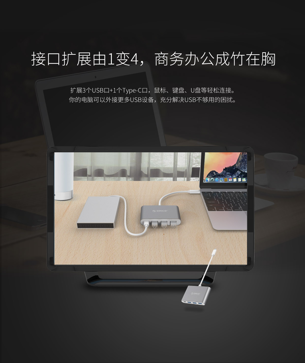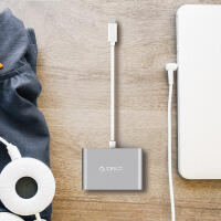 鋁合金Type-C轉(zhuǎn) Type-C/Type-A多功能擴(kuò)展塢