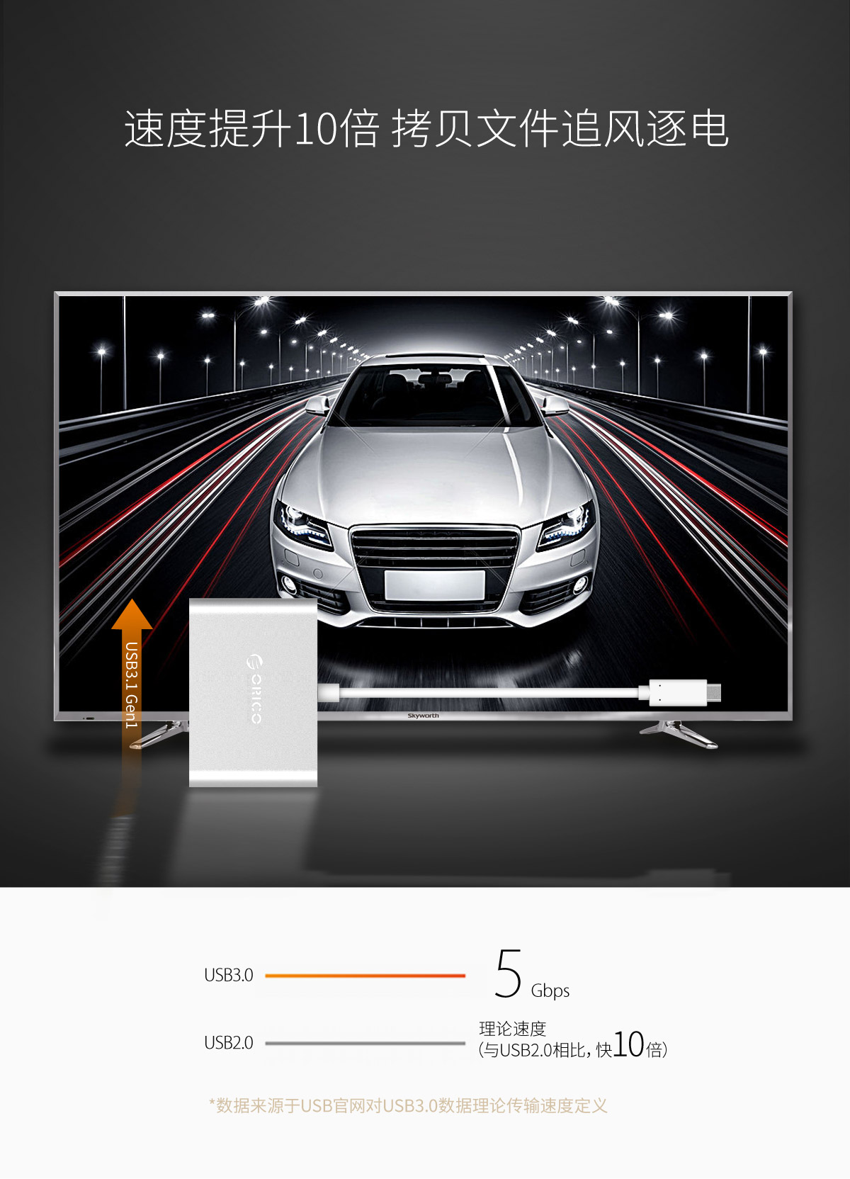 鋁合金機(jī)身 PD雙向接口 一體式數(shù)據(jù)線 藍(lán)色紅色指示燈 USB3.1 Gen1傳輸速度