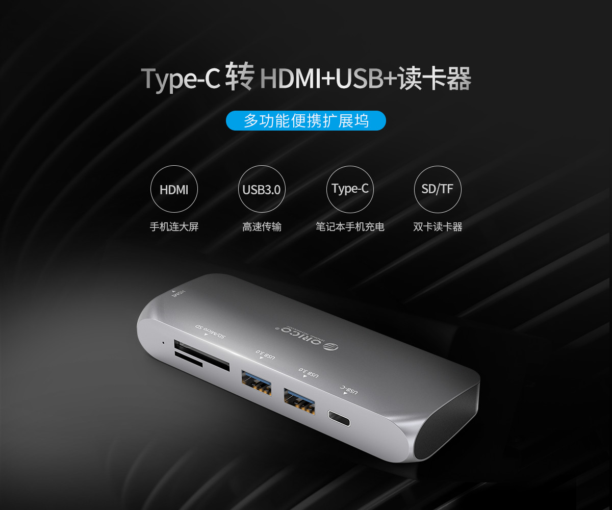 Type-C轉USB3.0-A/USB3.0-C/HDMI多功能擴展塢