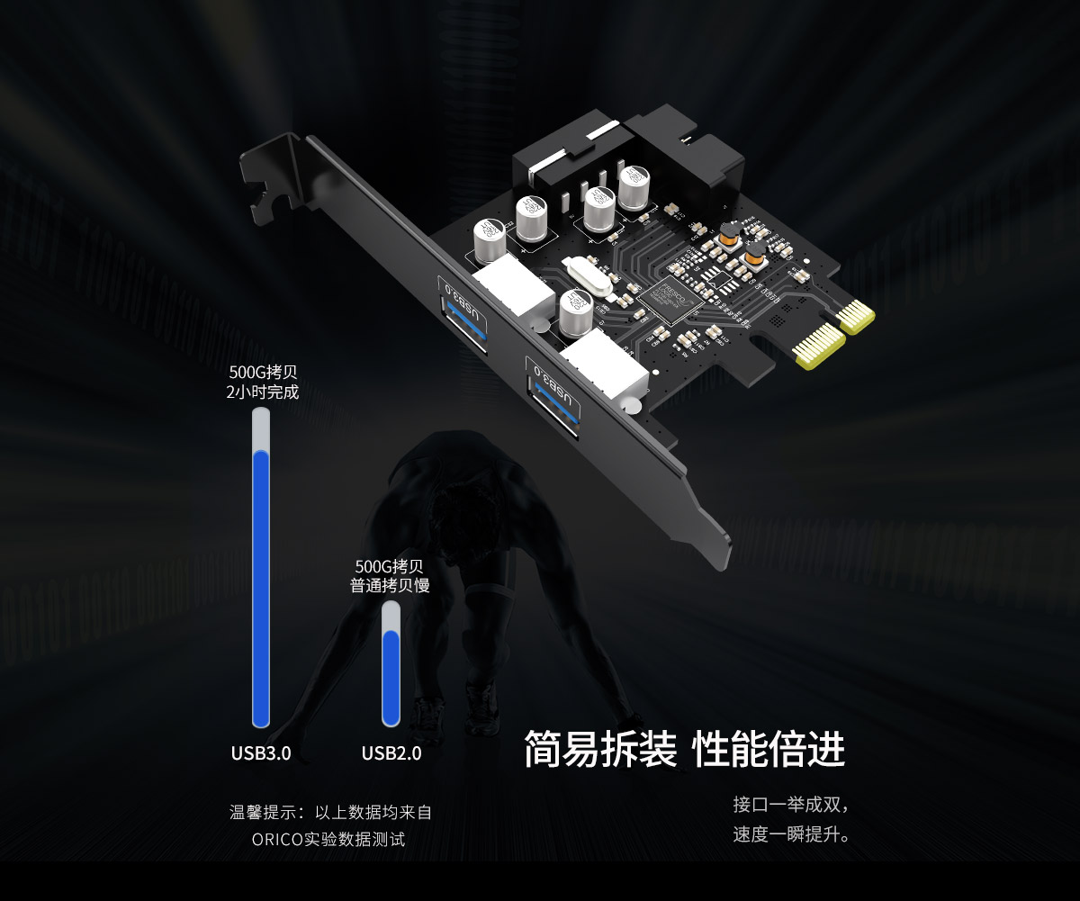 2口USB3.0 臺式機PCI-E擴展卡,預留19PIN接口