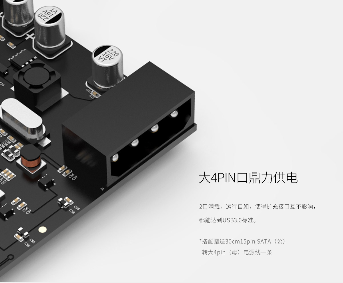 2口USB3.0 PCI-E擴展卡,4PIN口供電