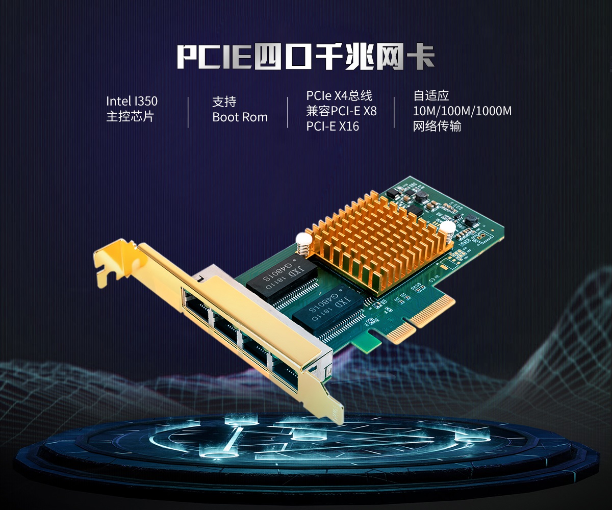 4口千兆網(wǎng)卡PCI-E擴(kuò)展卡,PCI-E X4總線