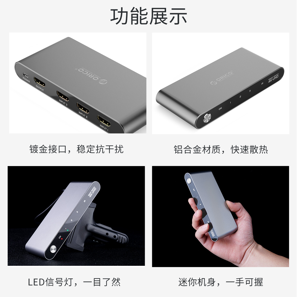 鋁合金紅外遙控HDMI切換器