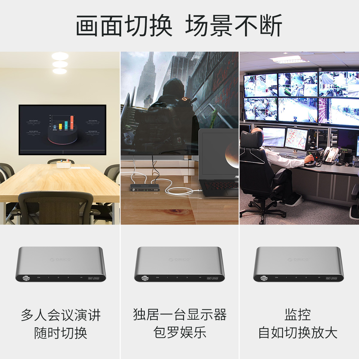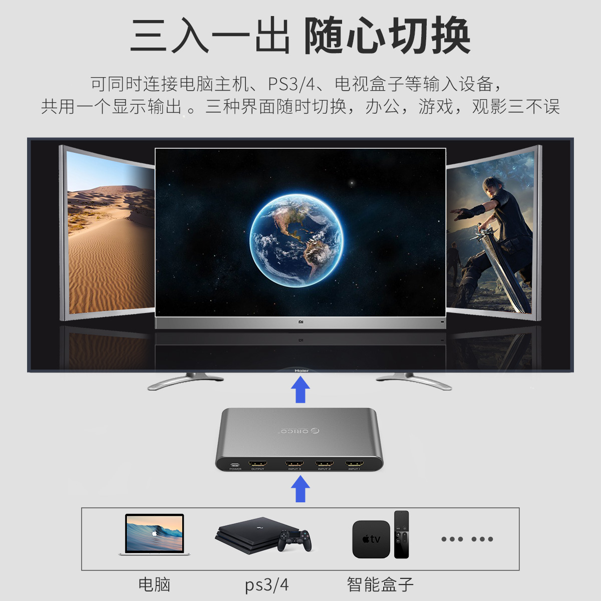 鋁合金打造 帶紅外遙控器 三屏一顯 HDMI屏幕高清切換