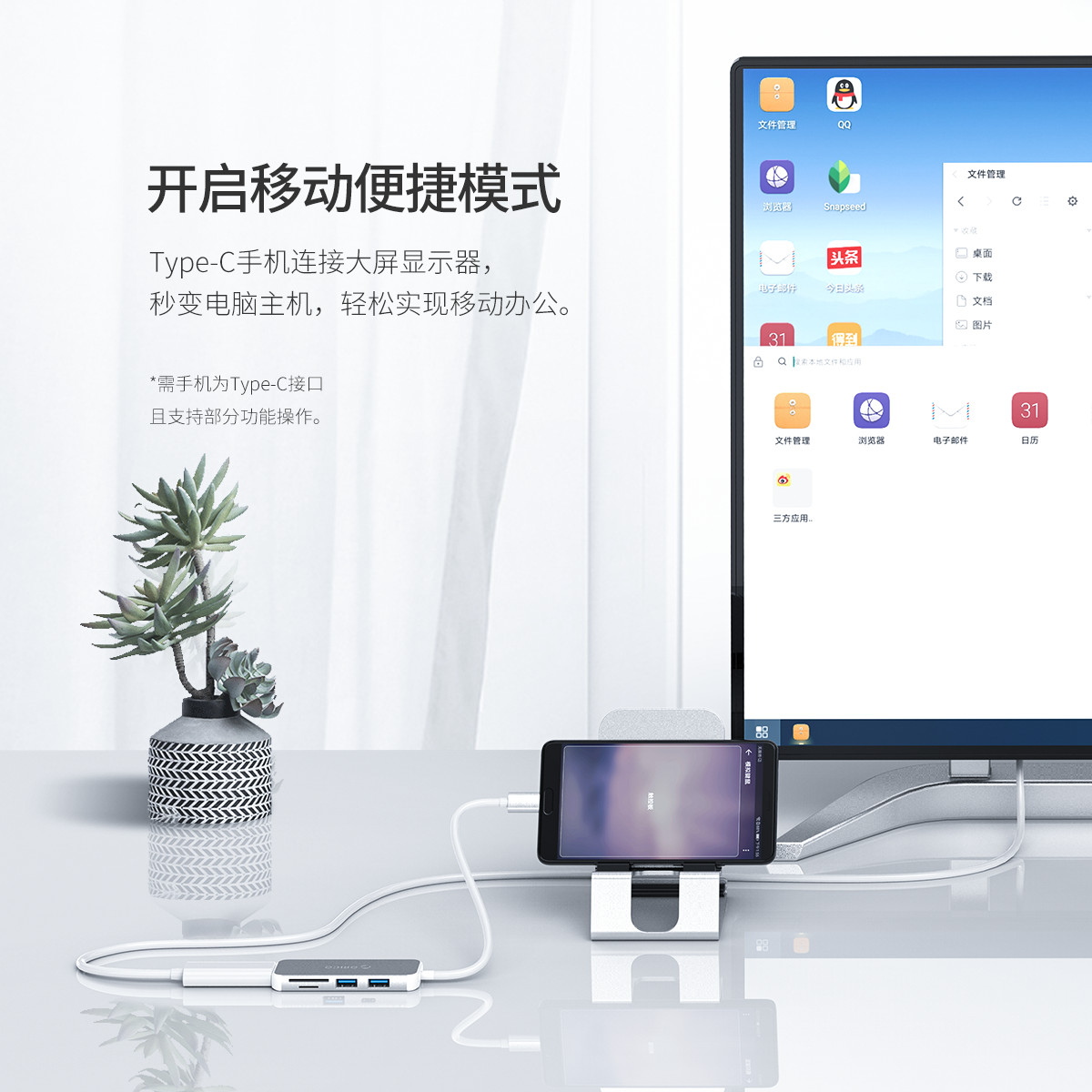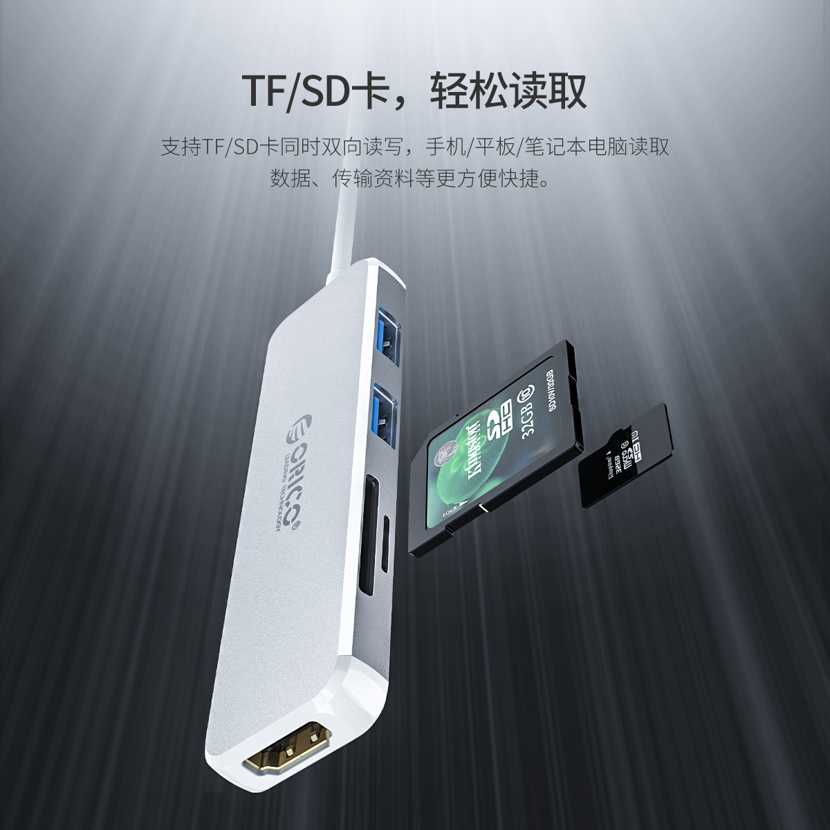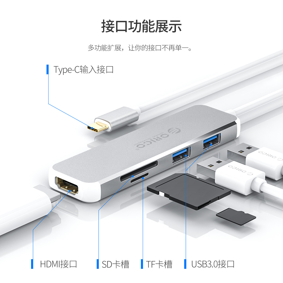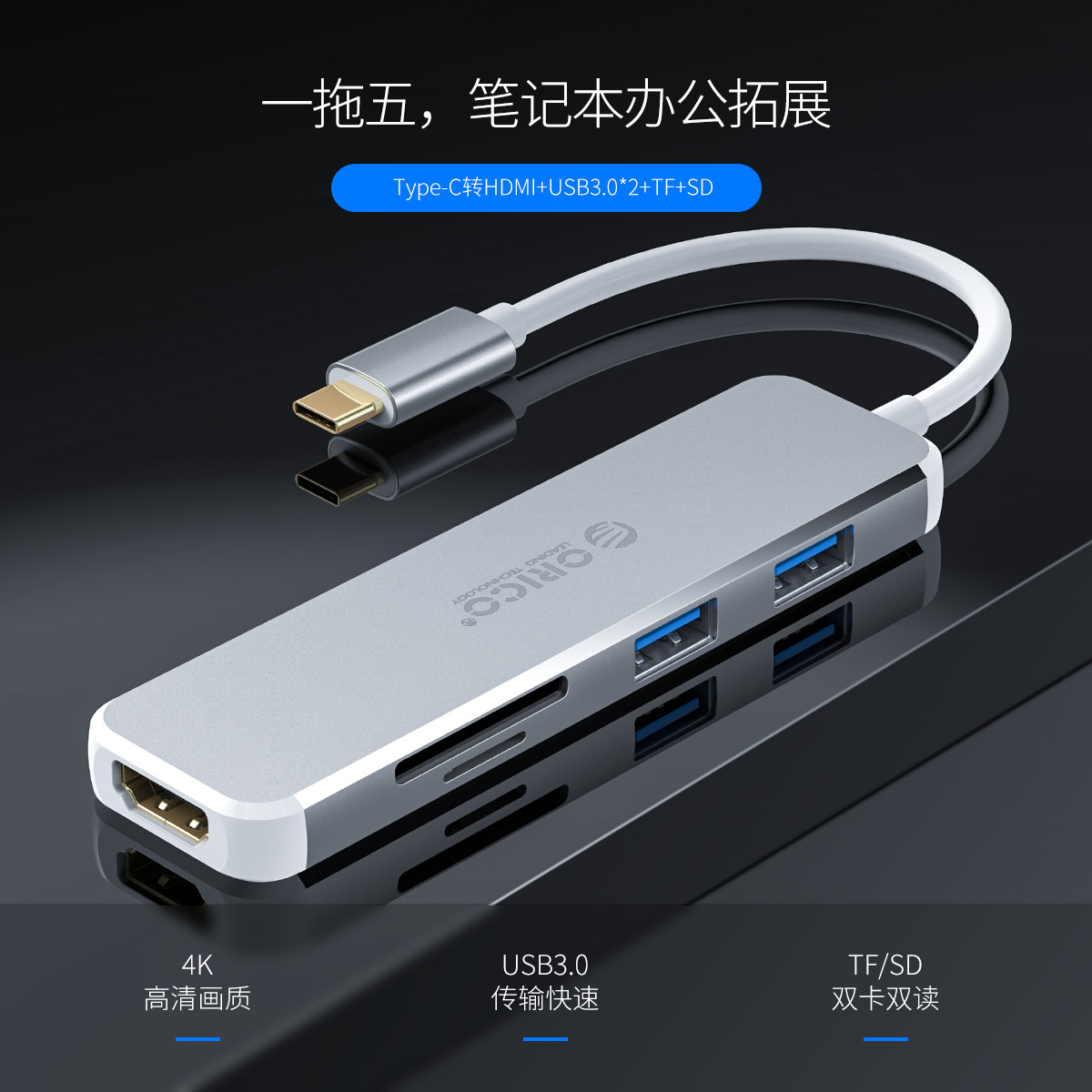Type-C轉HDMI+USB3.0*2+TF+SD多功能擴展塢