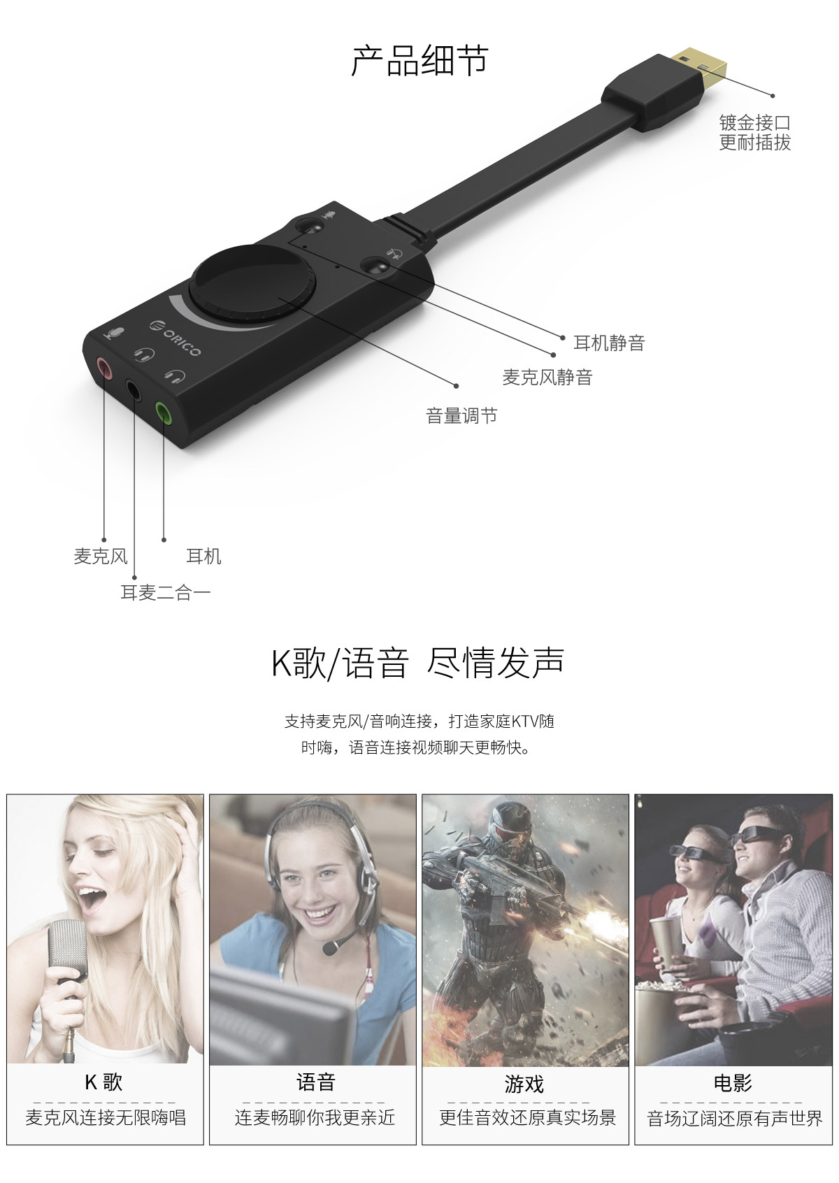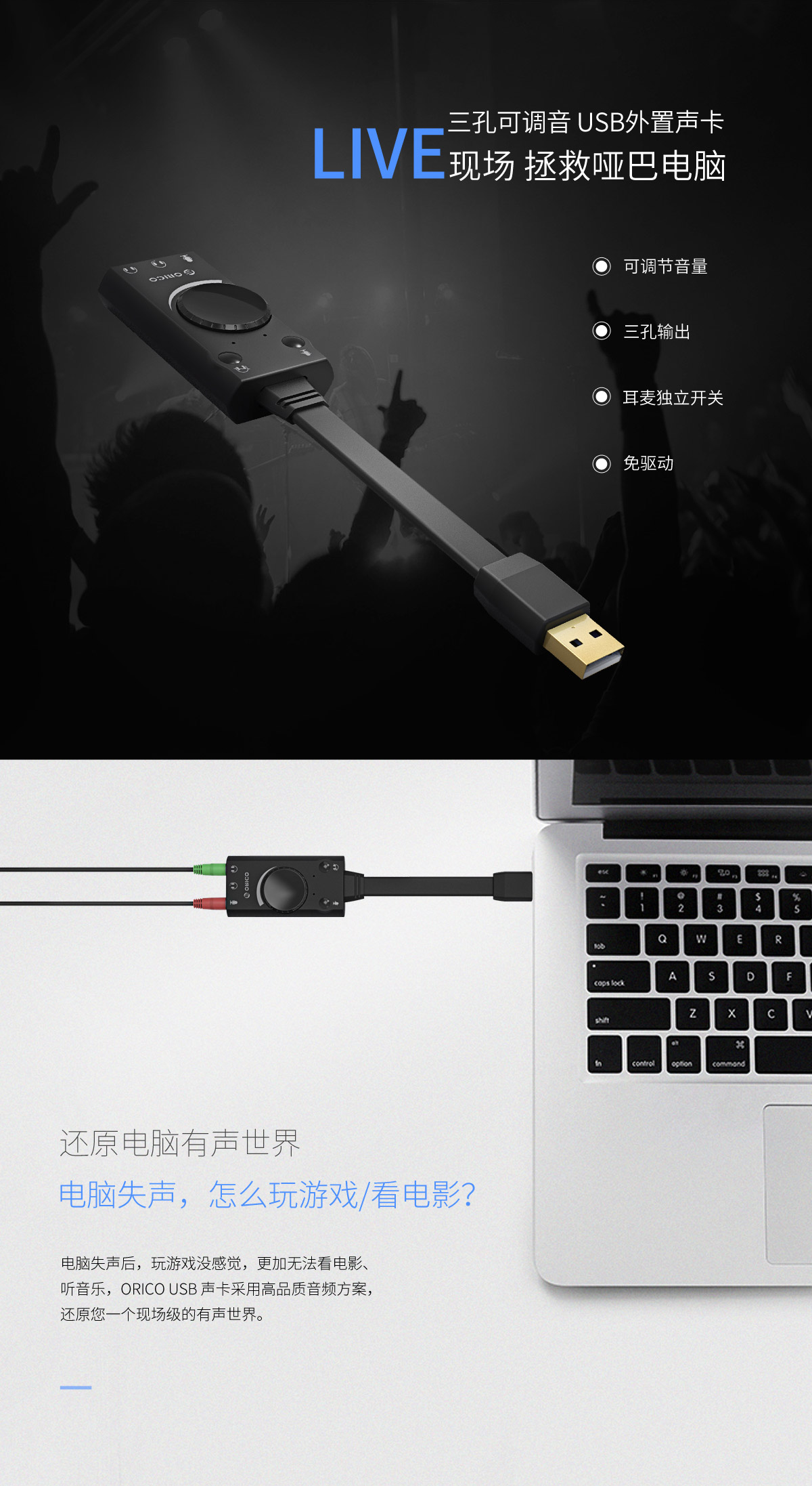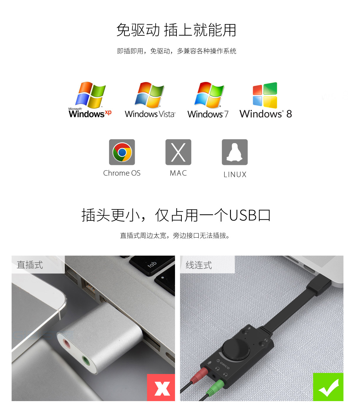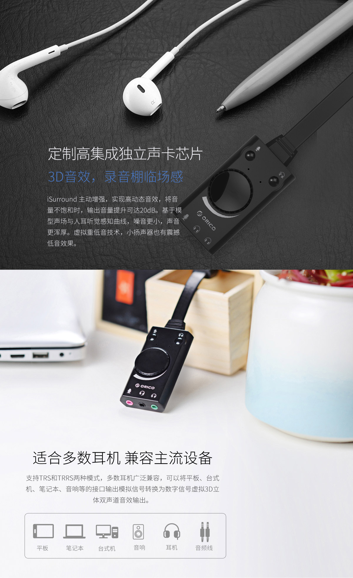 USB聲卡,3D音效,兼容主流設備