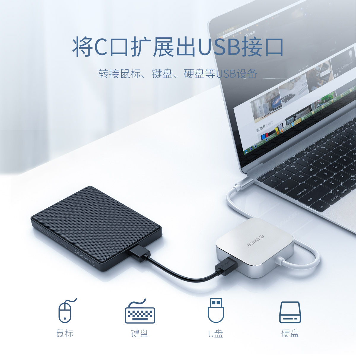 Type-C轉HDMI+USB3.0+VGA+Audio Jack多功能擴展塢