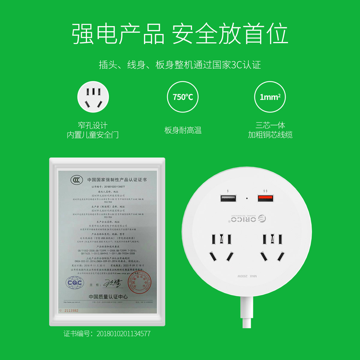 新國標5孔AC*2 + USB*2,1.5米線長,圓形板身。