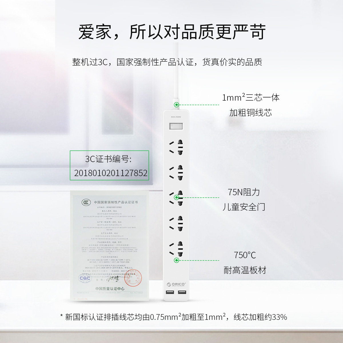 AC口*5, USB口*2,1.5米三芯一體式電源線