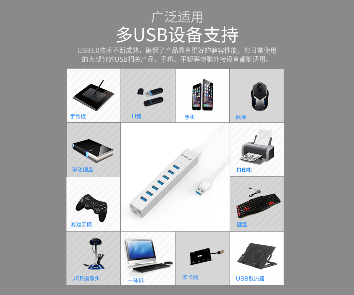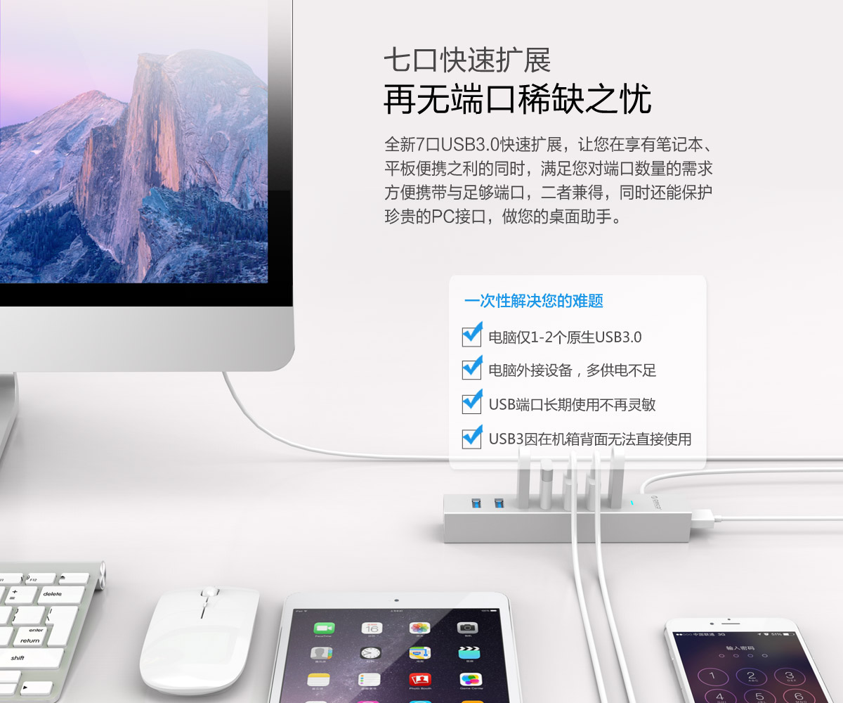 七口分線器,小巧便攜,高速傳輸,成熟兼容性能護航