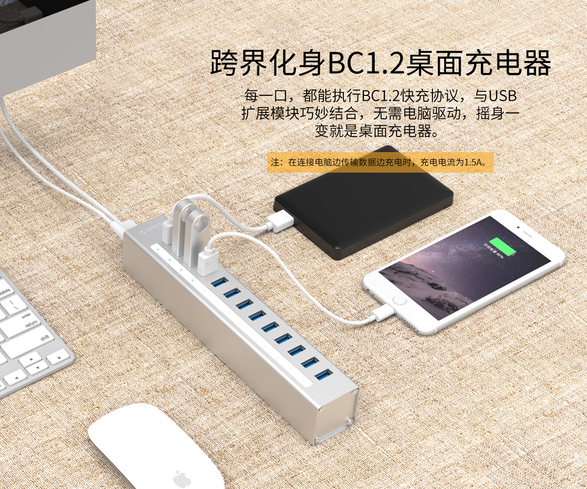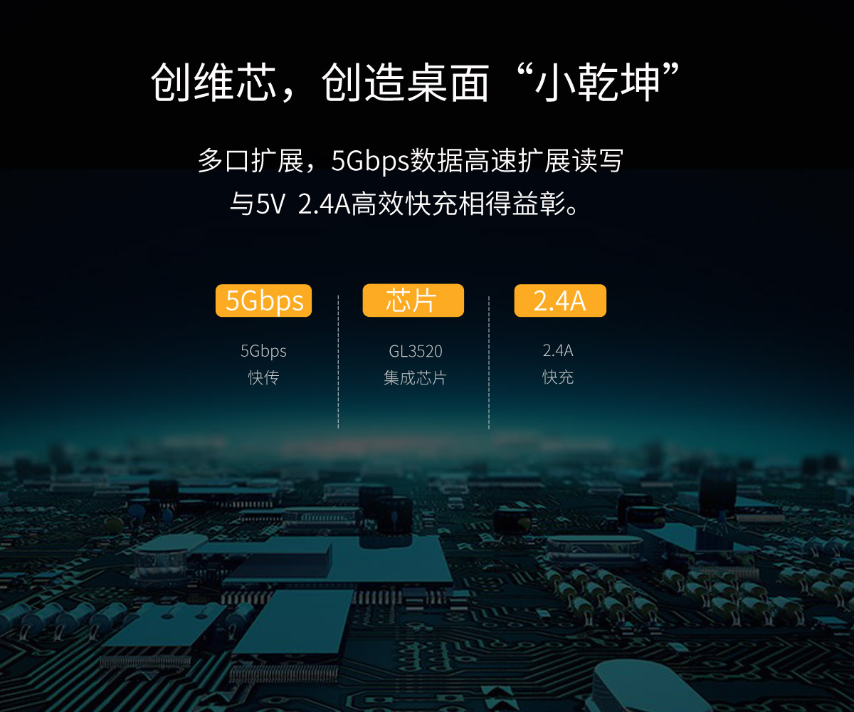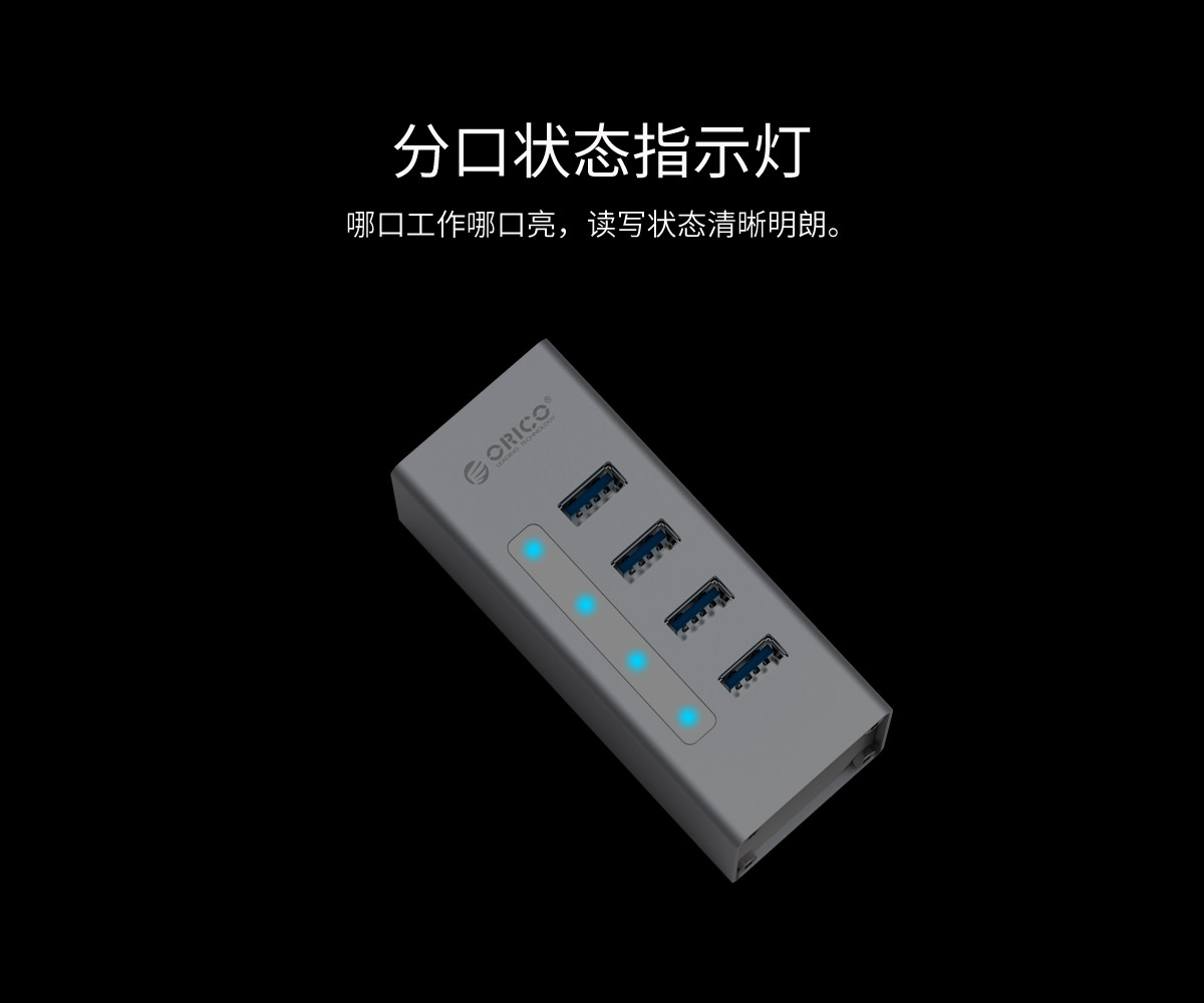 支持BC1.2快充協議,5Gbps高速傳輸,分口指示燈,狀態一目了然