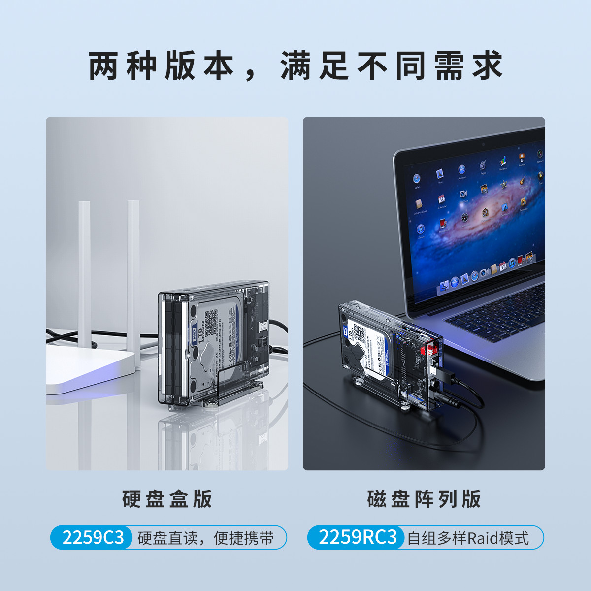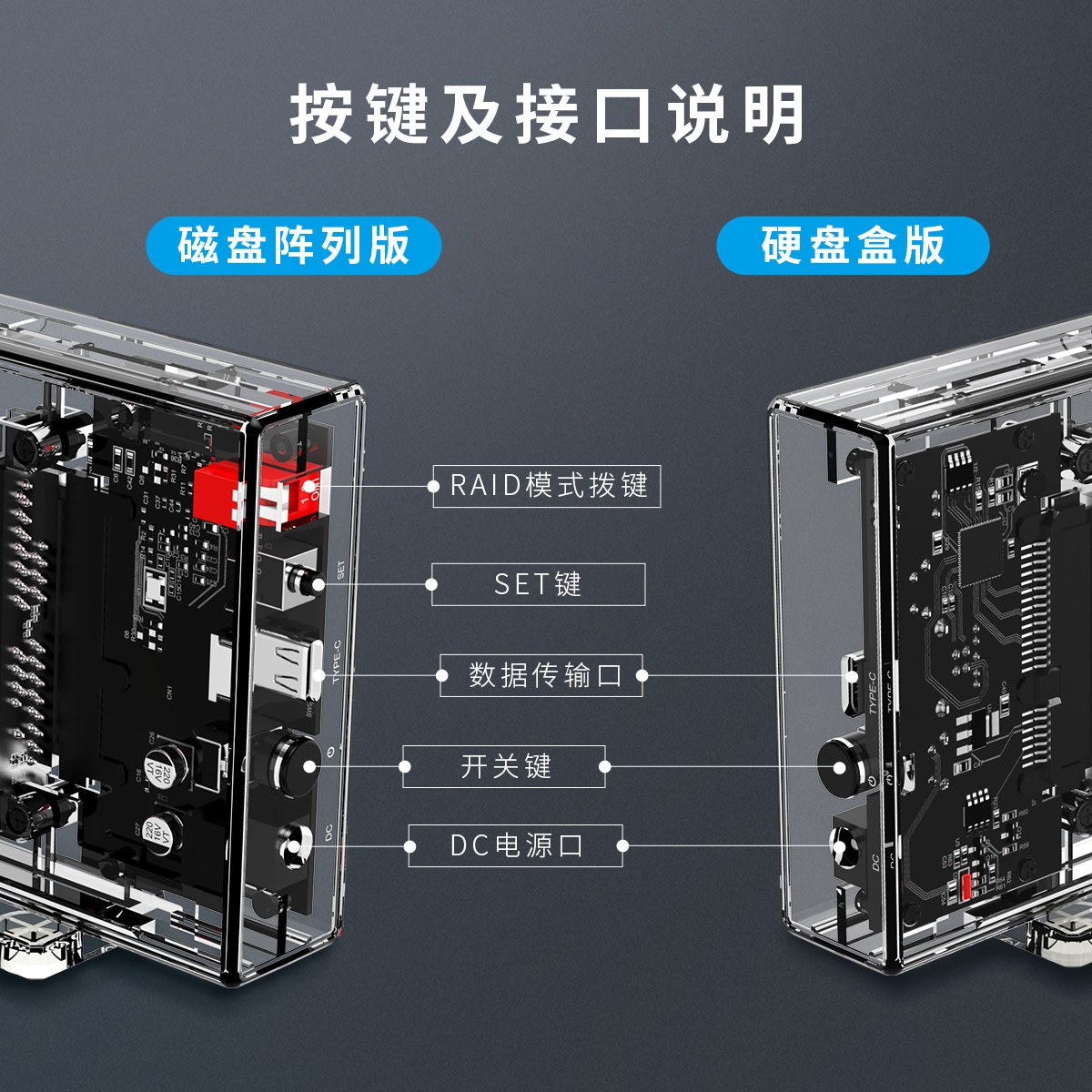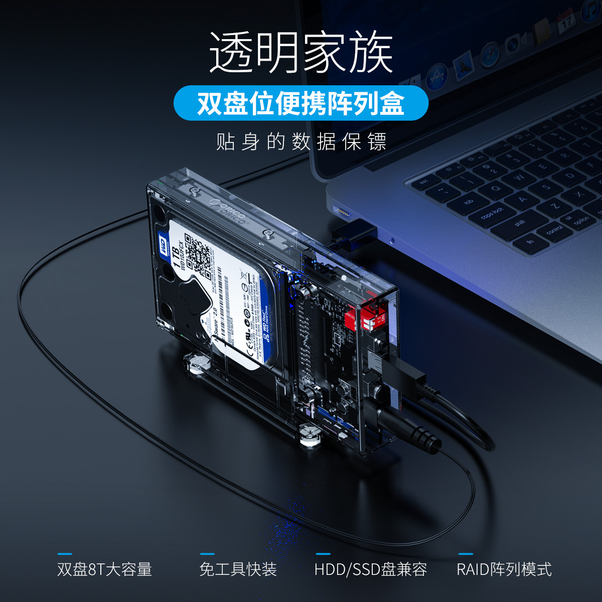 2.5寸雙盤(pán)位陣列硬盤(pán)盒,雙盤(pán)8T大容量,免工具快裝,RAID陣列模式