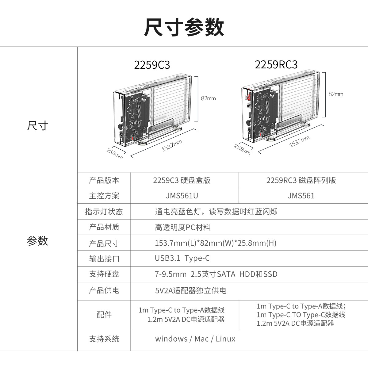 2.5寸雙盤(pán)位透明陣列硬盤(pán)盒