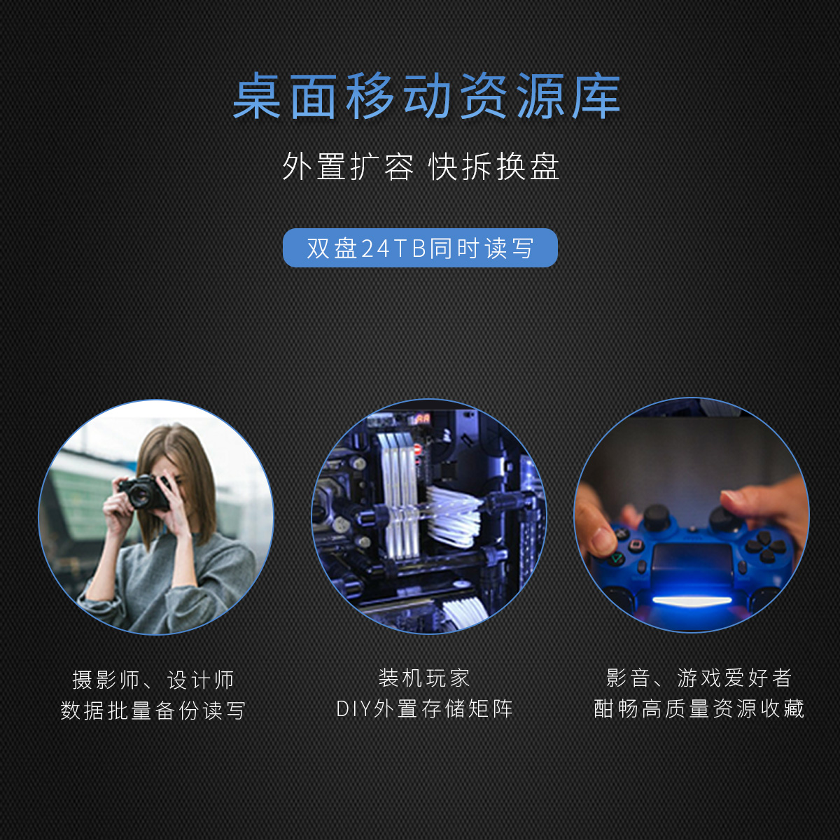 雙盤24T大容量,免工具快裝,全景透明外殼