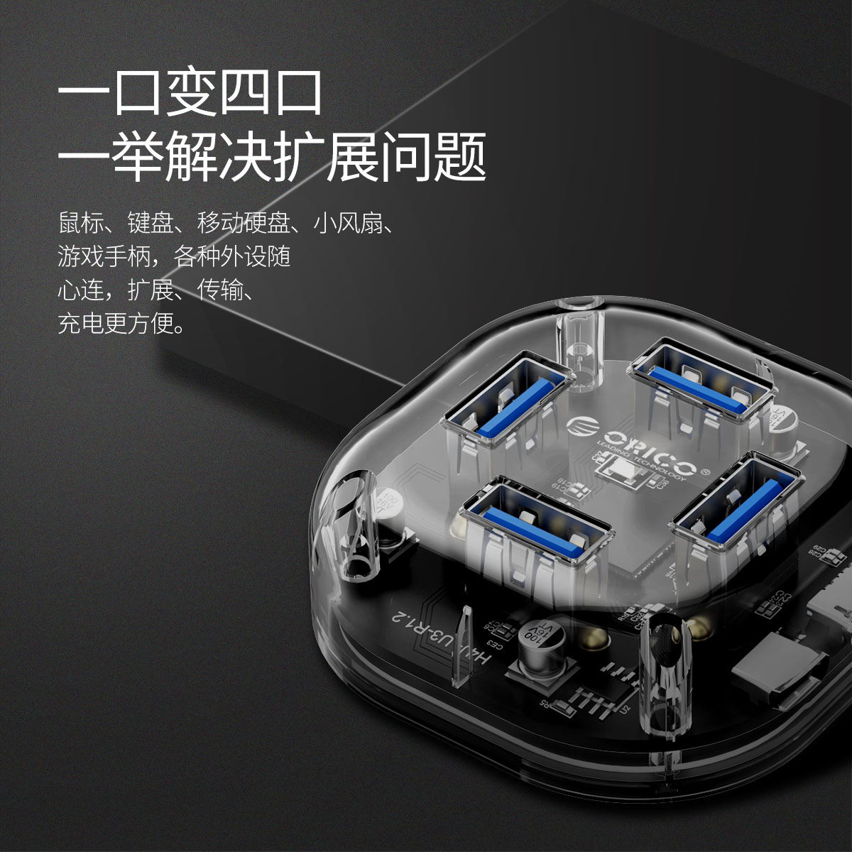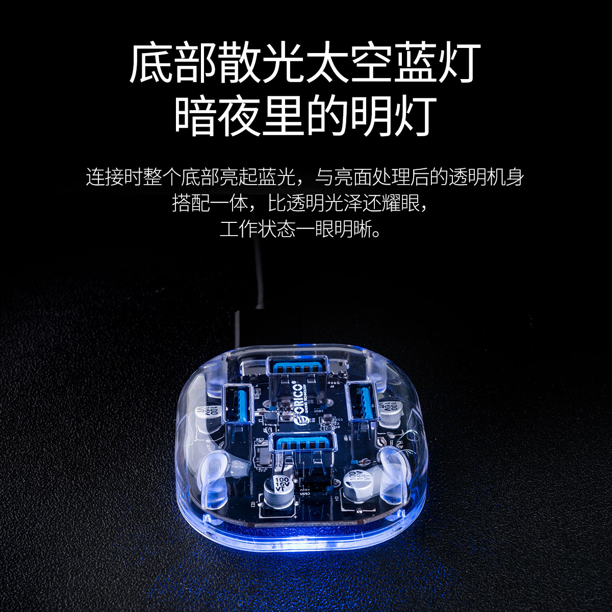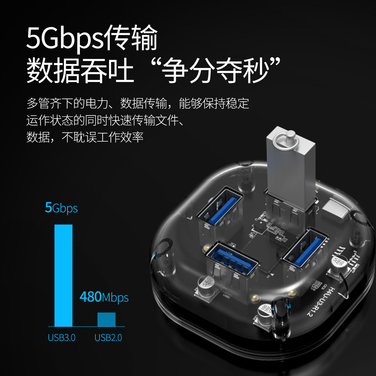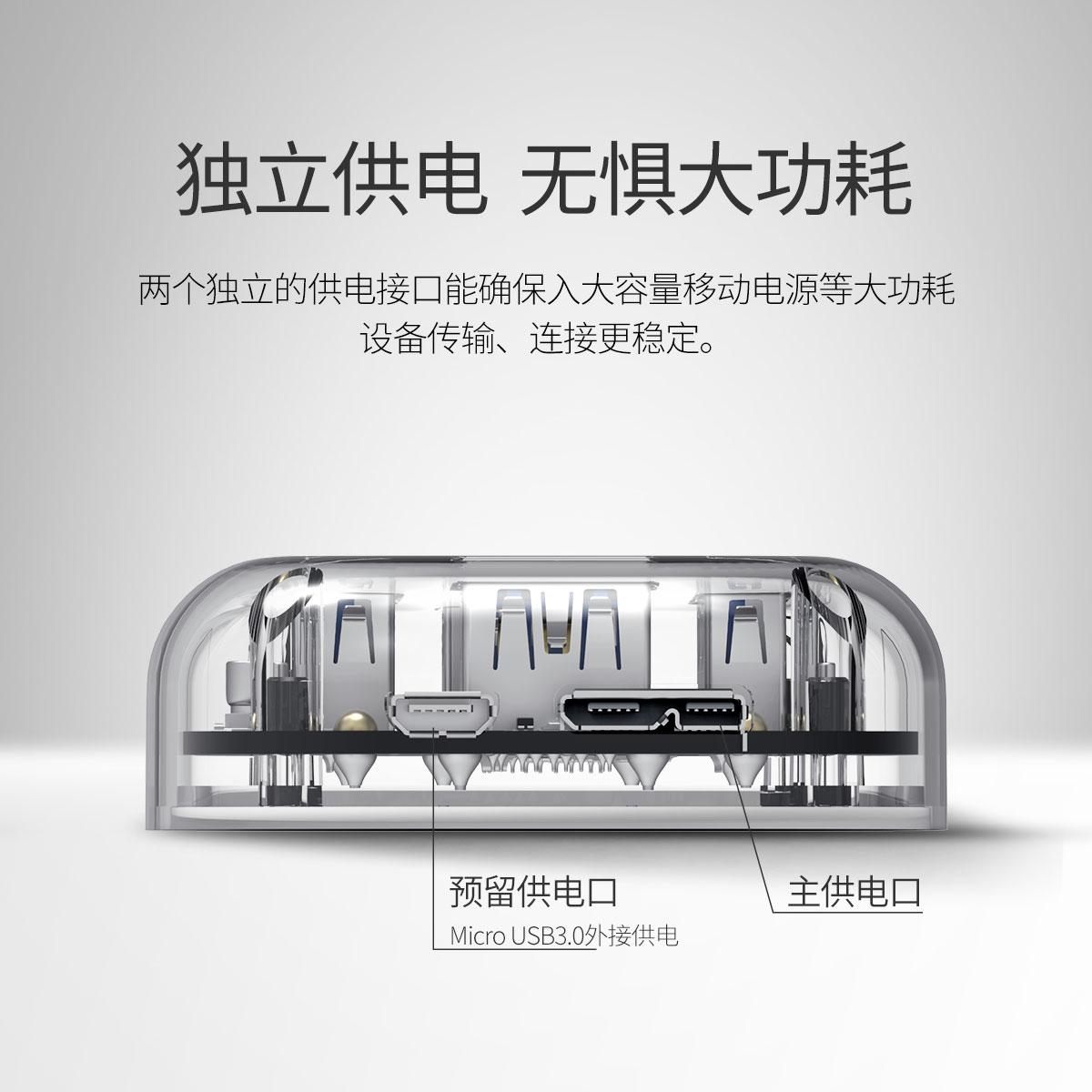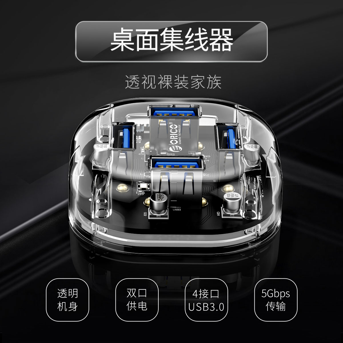 透明外殼,四口USB 3.0擴展所需,5Gbps疾速傳輸,獨立供電口,VL817主控