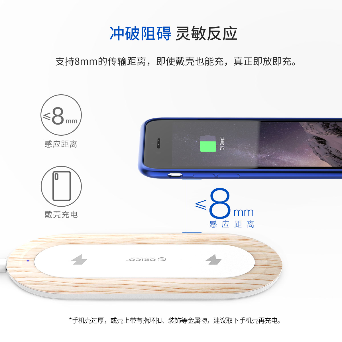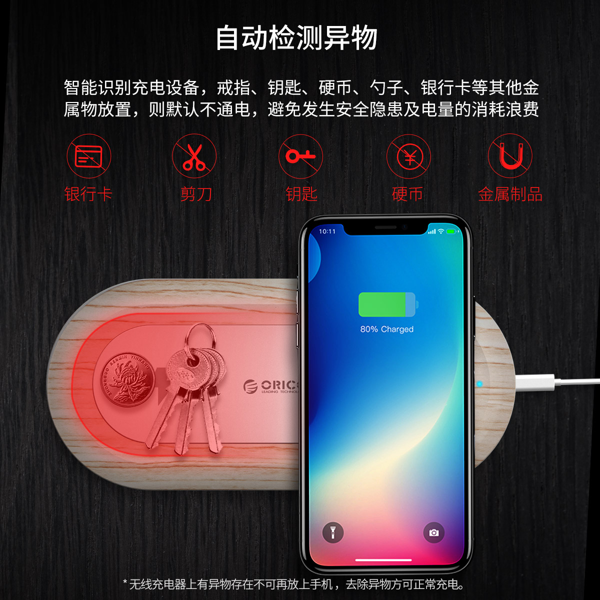 10W木紋智能雙線圈無線充電器