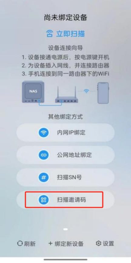 軟件將自動掃描局域網(wǎng)內的NAS設備,選中對應設備即可完成設備綁定。